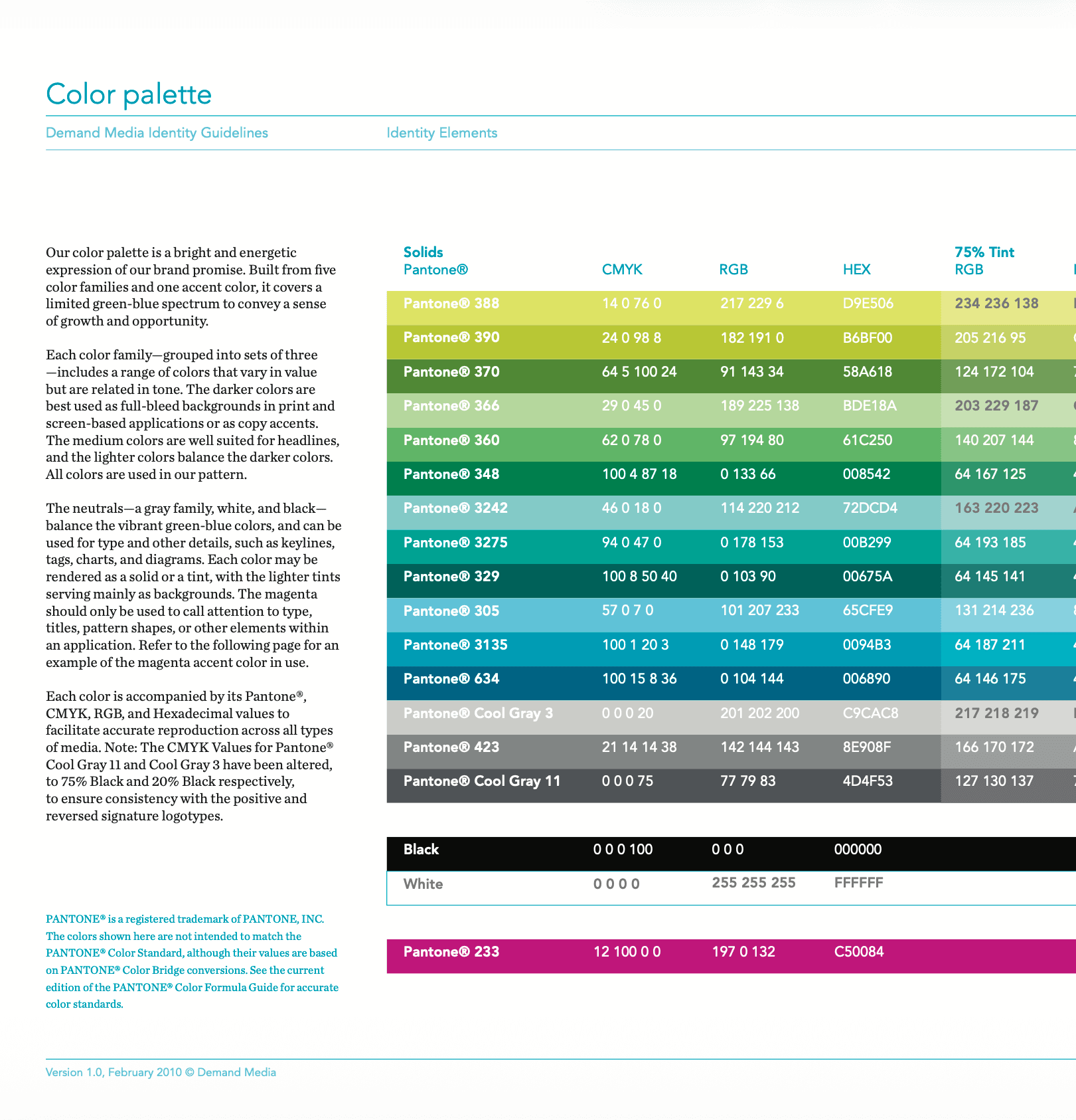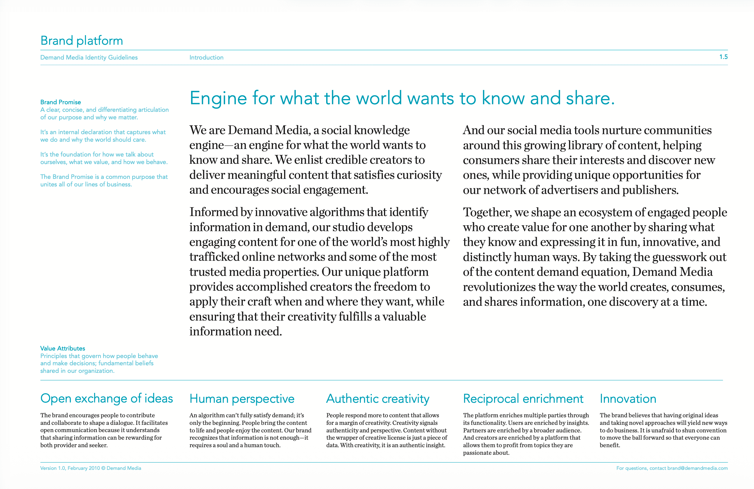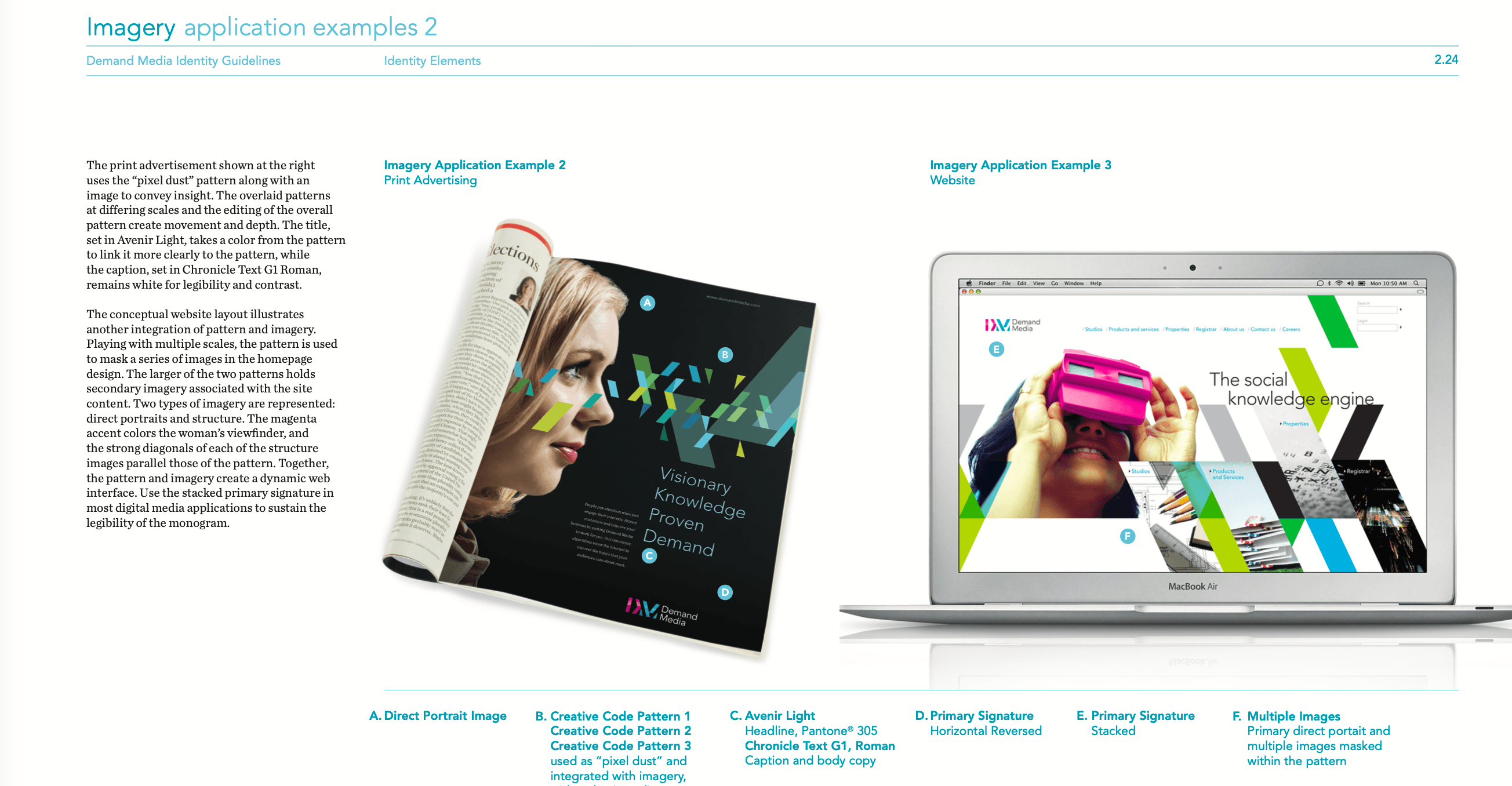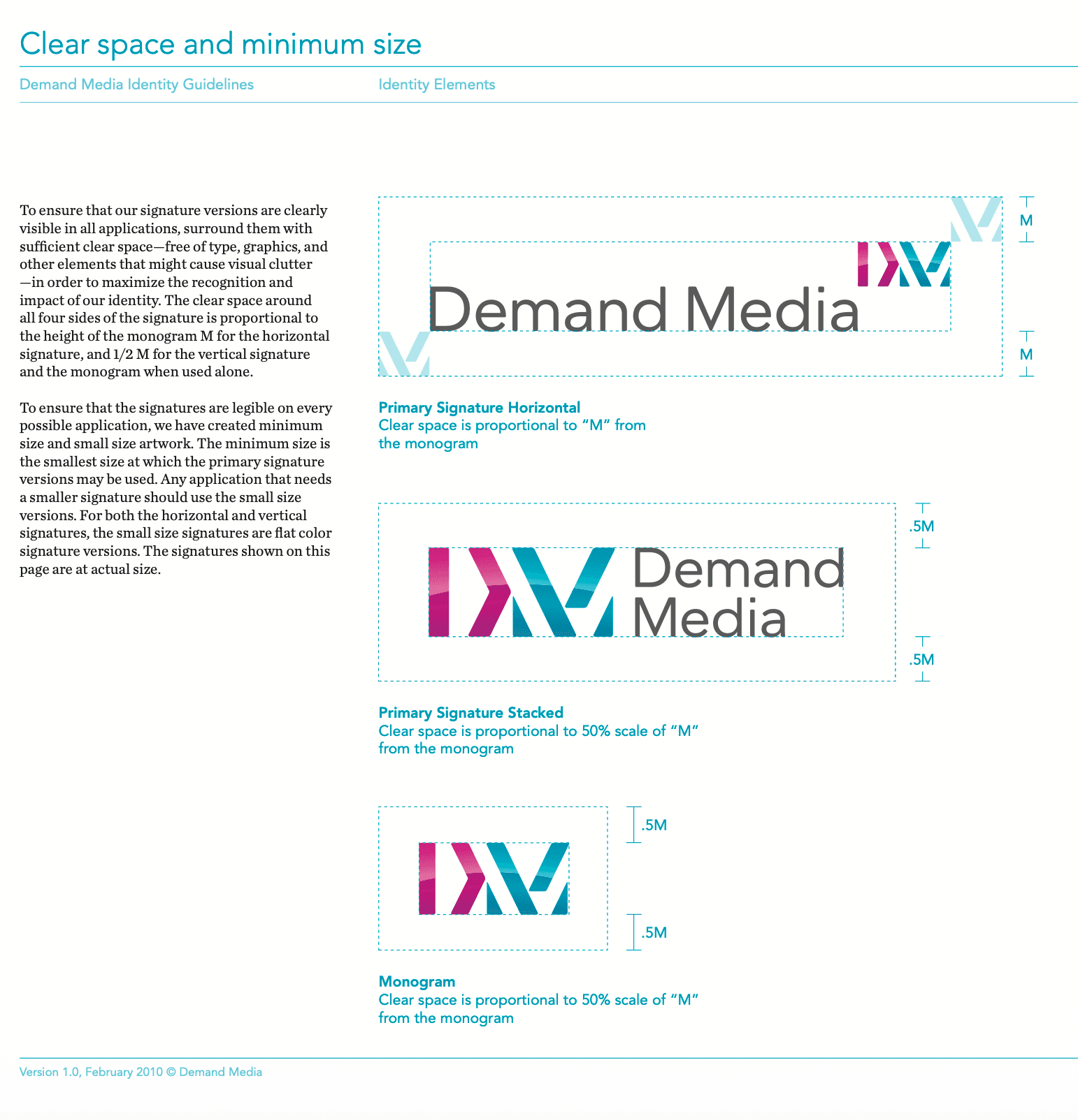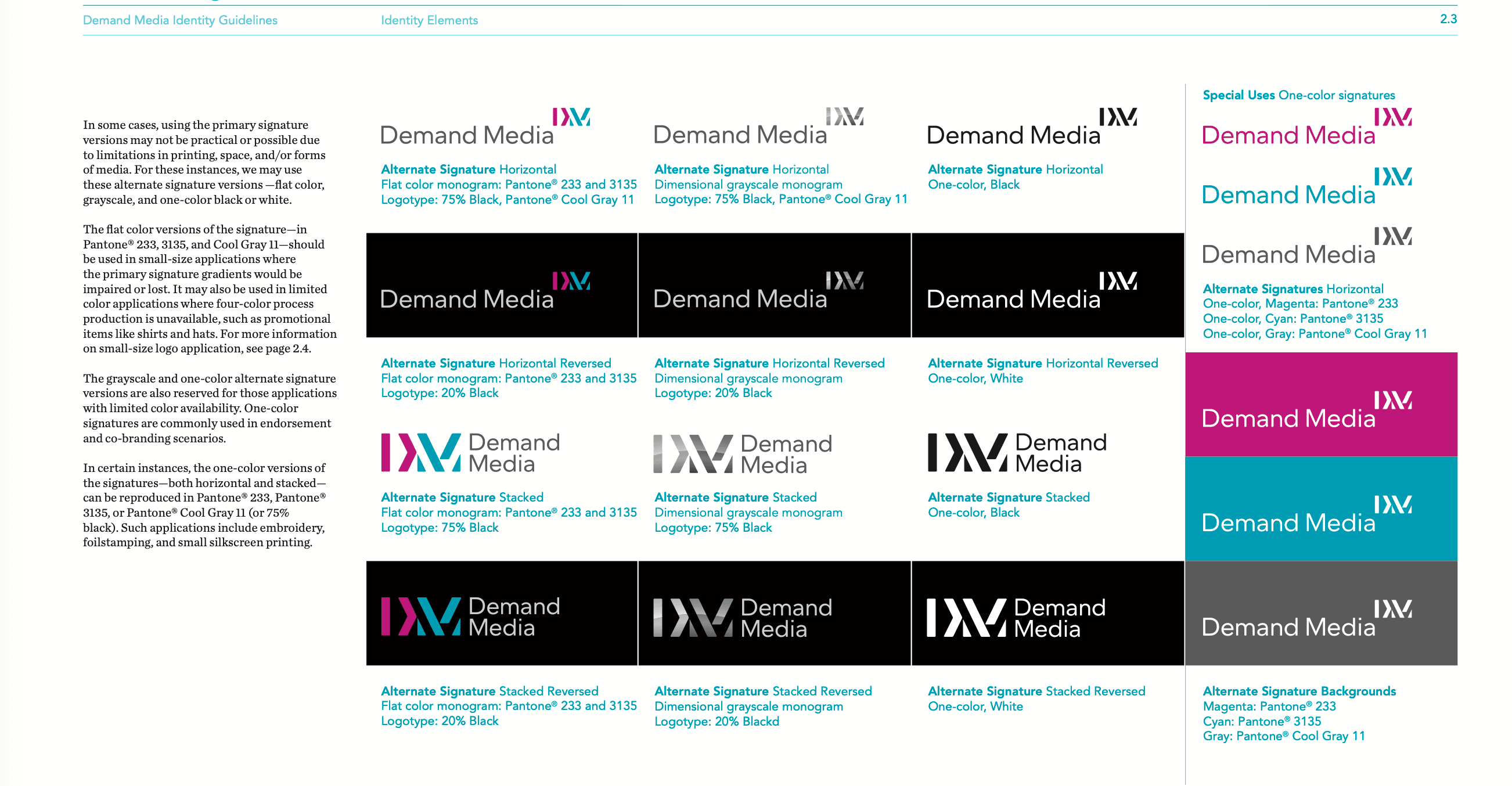 Then led activation across every touchpoint: websites, marketing materials, office signage, internal tools, and investor-facing communications. This became the definitive reference for how Demand Media presented itself as a public company.